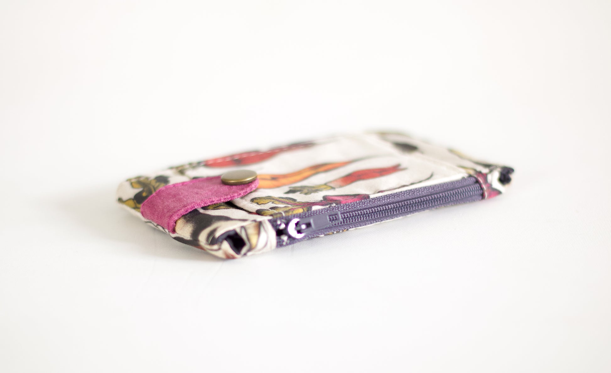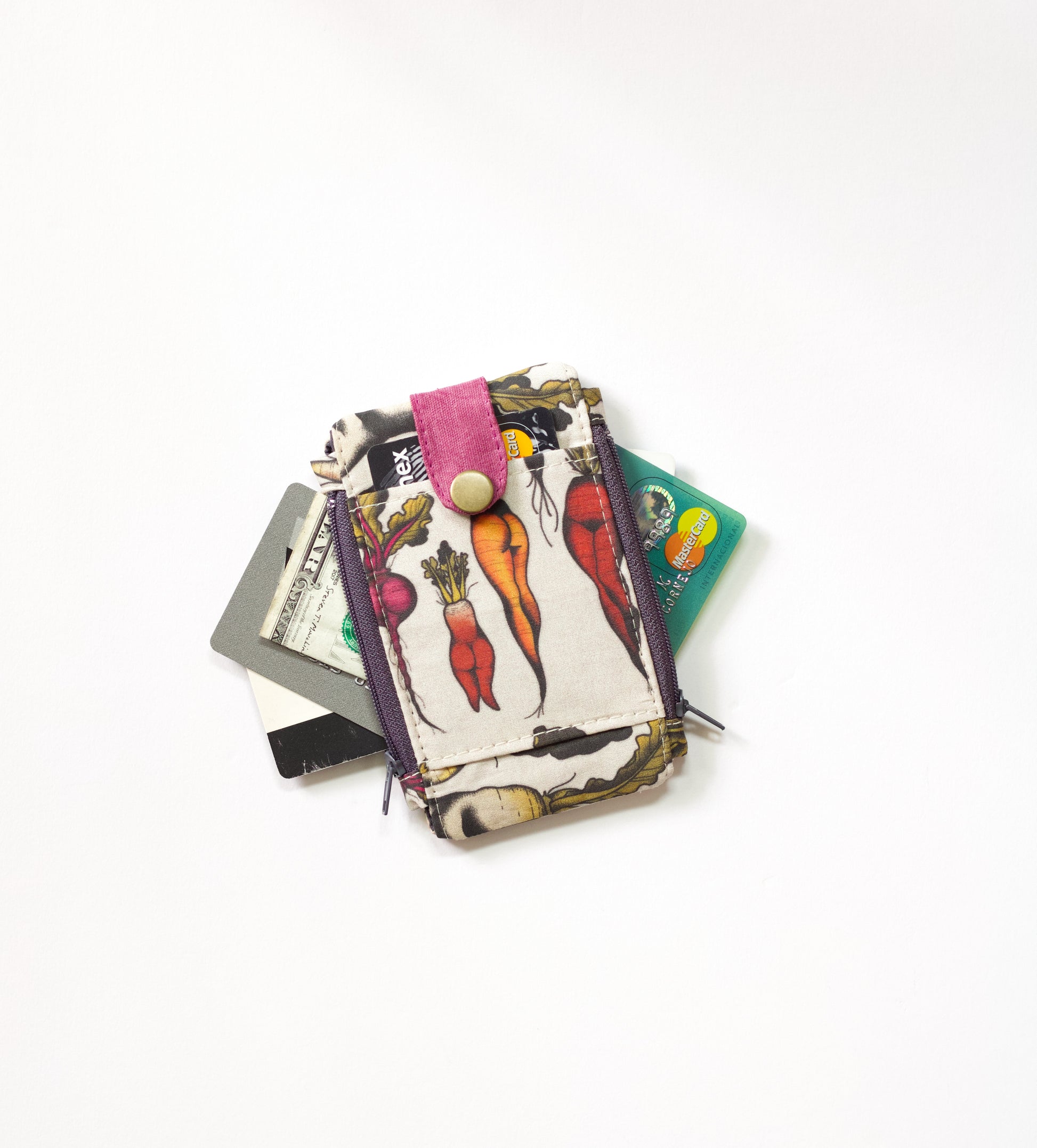 Cartera de llavero botánica, cartera de zanahoria con doble cremallera, cartera de bolsillo para amantes del jardín, cartera vegana pequeña, regalo para ella