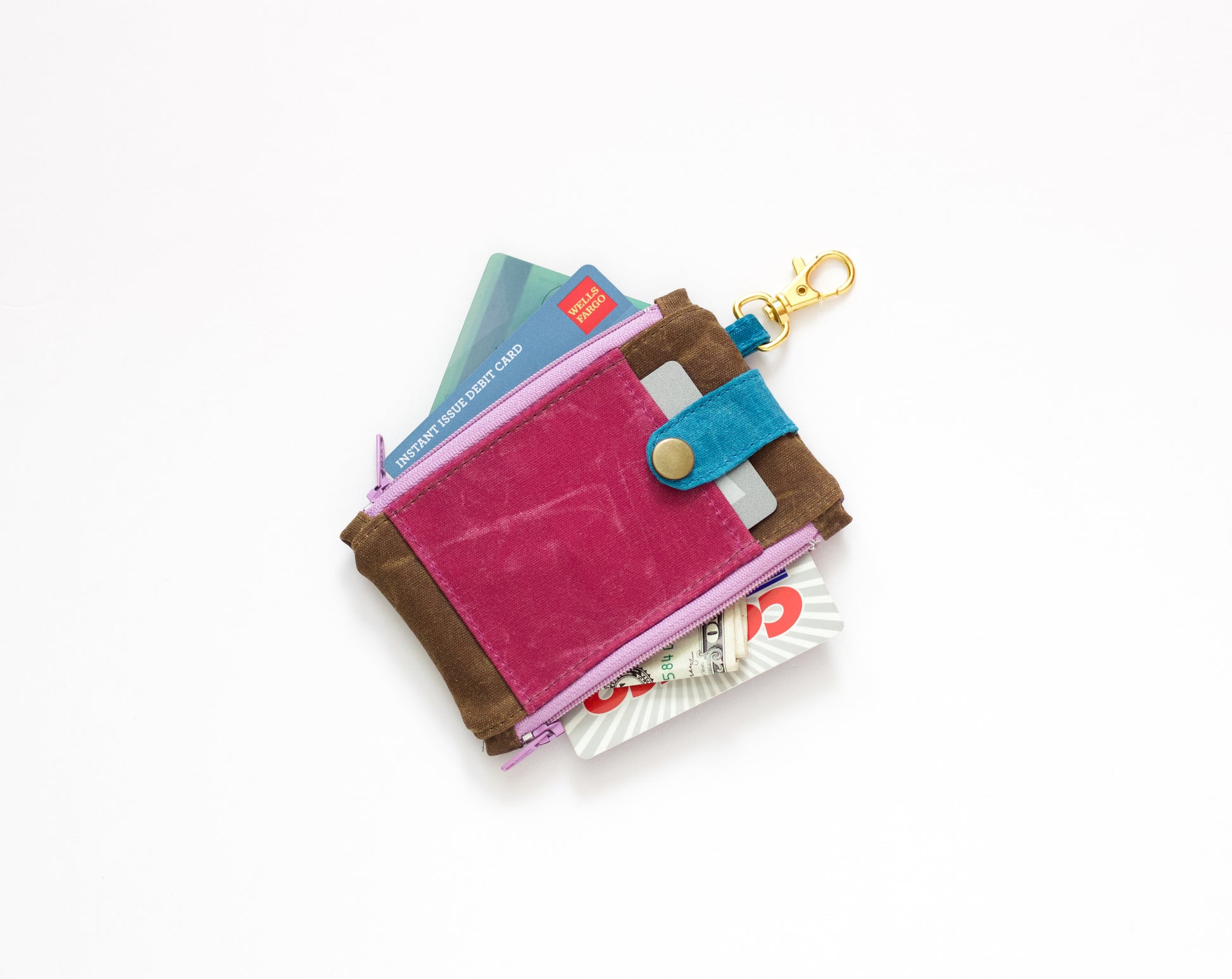 Cartera de llavero de lona encerada para mujer, mini cartera de mujer, cartera de bolsillo de lona encerada, cartera con doble cremallera