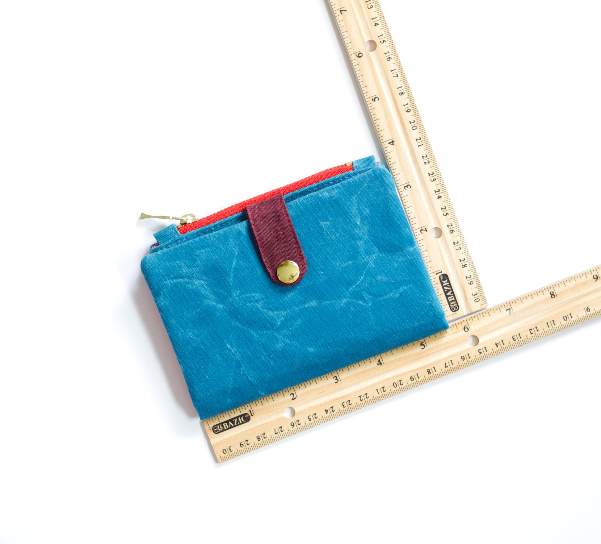 Cartera de lona encerada color azul mosaico, cartera vegana bifold para mujer, cartera de viaje impermeable, linda cartera colorida para mujer, organizador de tarjetas de crédito