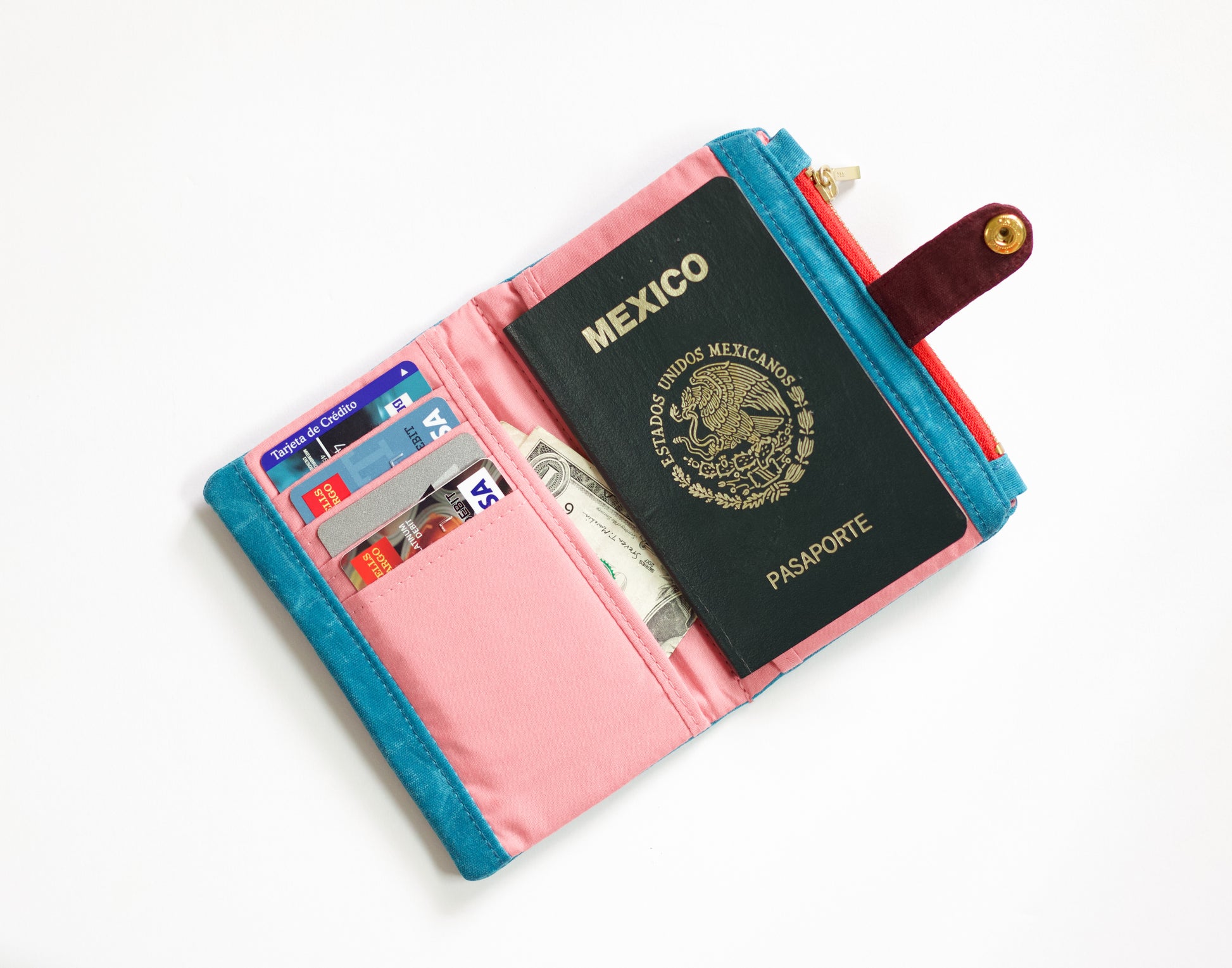 Tiene: 8 ranuras para tarjetas, 1 bolsillo con cremallera y 2 espacios traseros para billetes