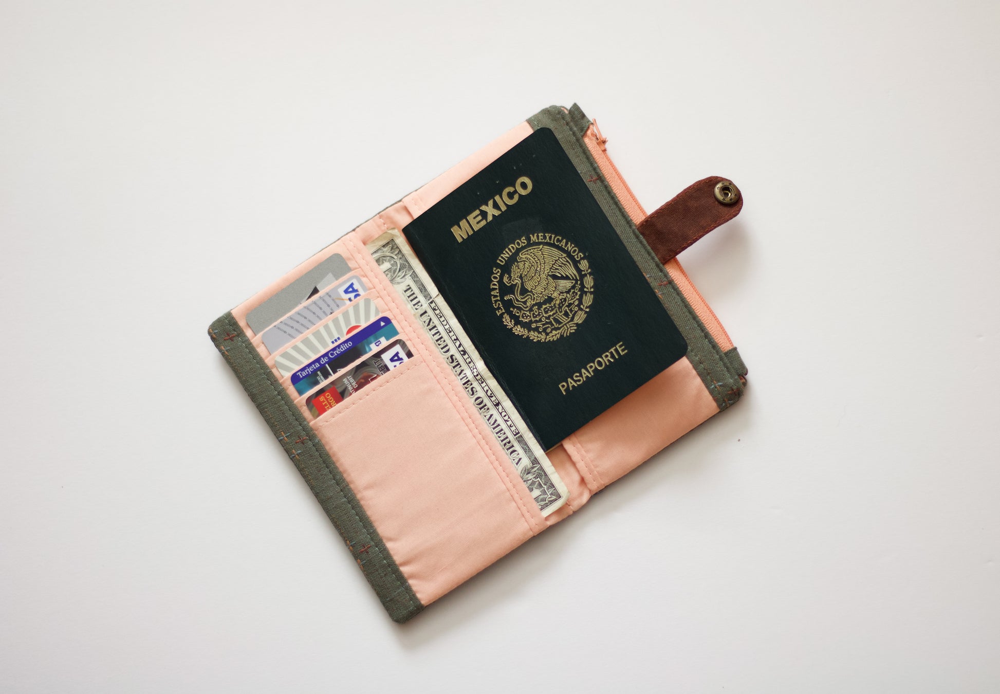 Tiene: 10 ranuras para tarjetas, 1 bolsillo con cremallera y 2 espacios traseros para billetes