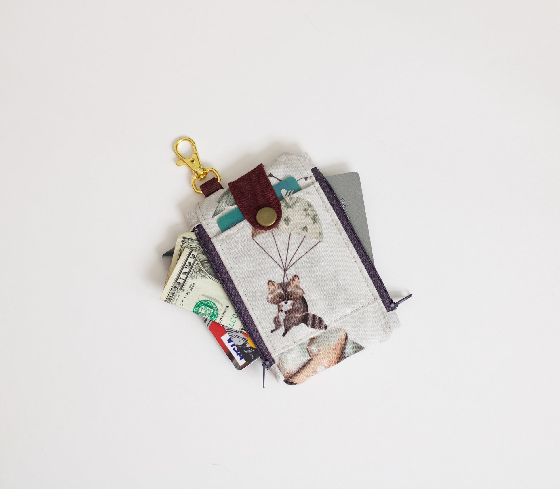 Cartera mini de mapache con doble cremallera, mini monedero kawaii, cartera de bolsillo, cartera de algodón linda para mujer
