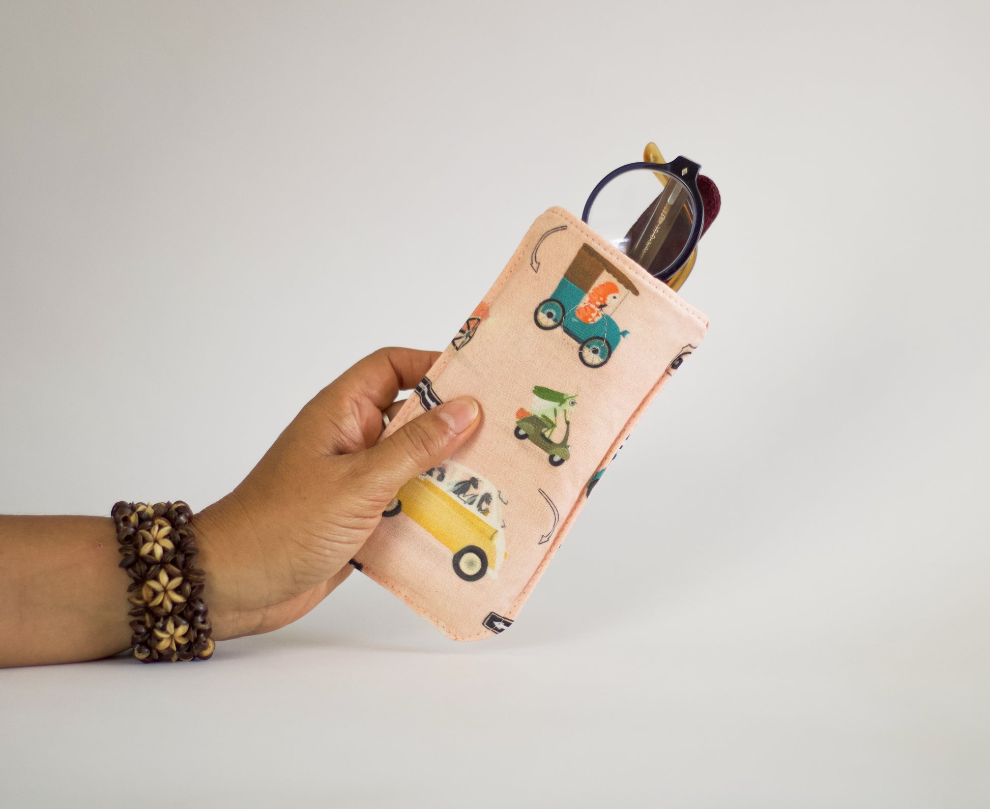 Estuche para gafas de bichos en coches, linda bolsa para gafas de sol, funda suave de algodón para gafas